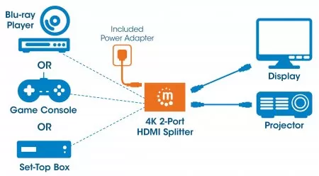 207669 Splitter HDMI de 2 puertos; Resolución 4K@30Hz, Video full 3D y Color Profundo.