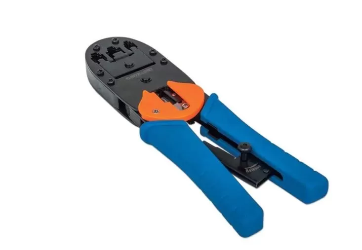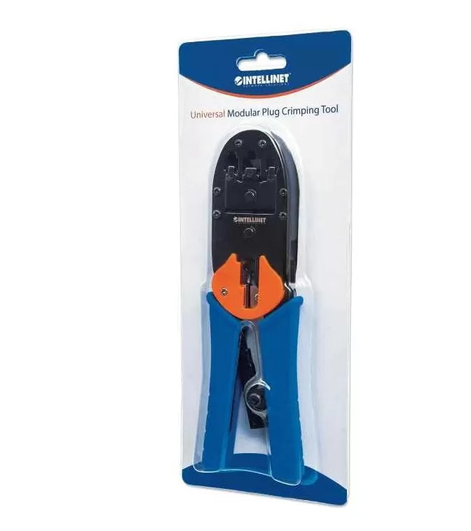 211048 Pinza para crimpear plug modular RJ45, RJ12 y RJ11, Corta y quita el forro de cable redondo y plano.