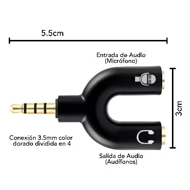 Adaptador Stereo 3.5 mm Macho a Dual 3.5 mm H BROBOTIX 181802-2, Negro