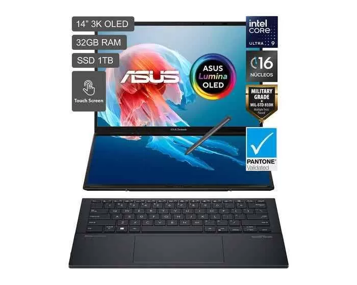 ASUS Zenbook Duo Intel Core Ultra 9 285H 32GB, 1TB, WIN11PRO, Intel Arc Intel AI Boost NPU up to 13TOPS Incluye funda y Stylus