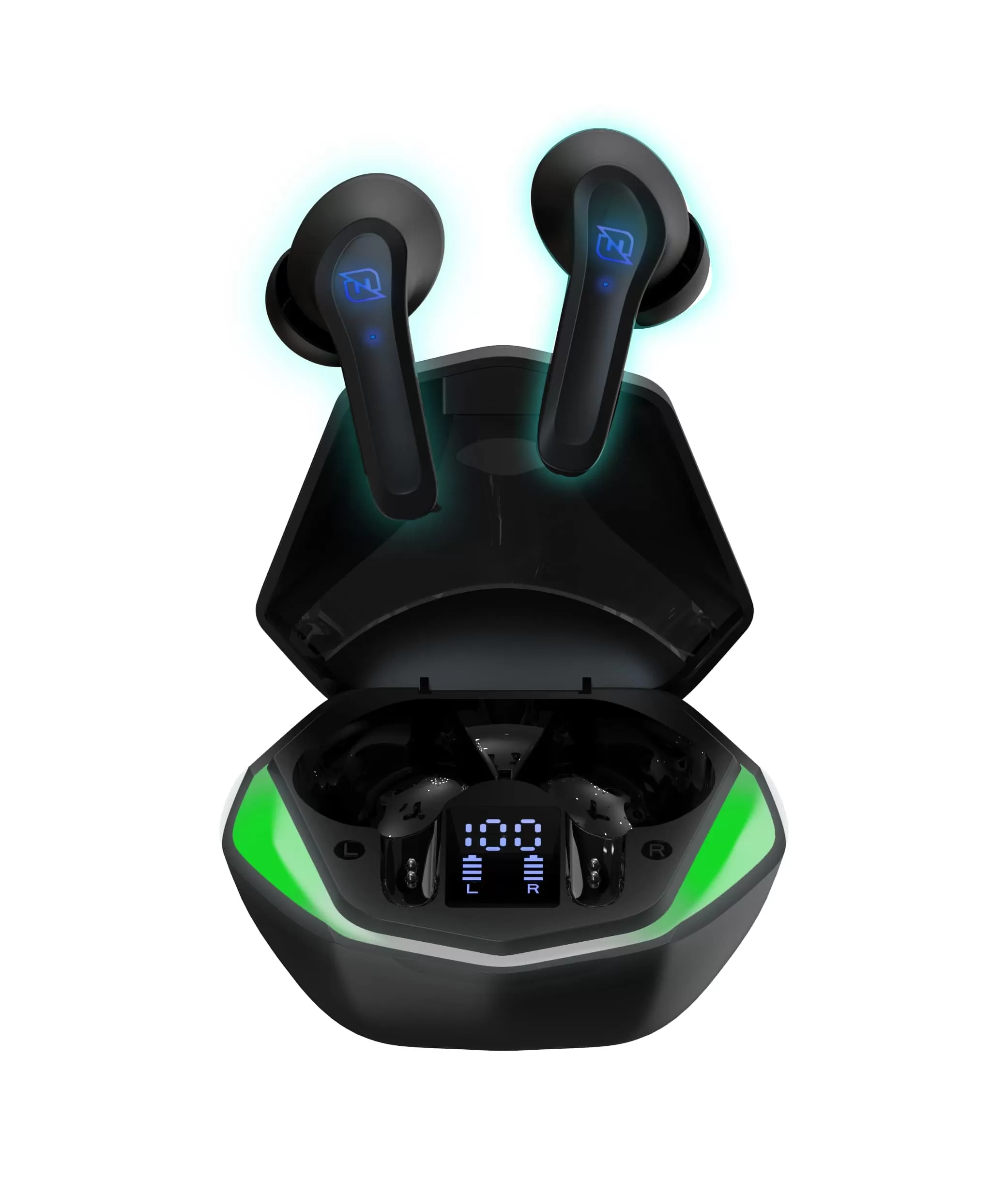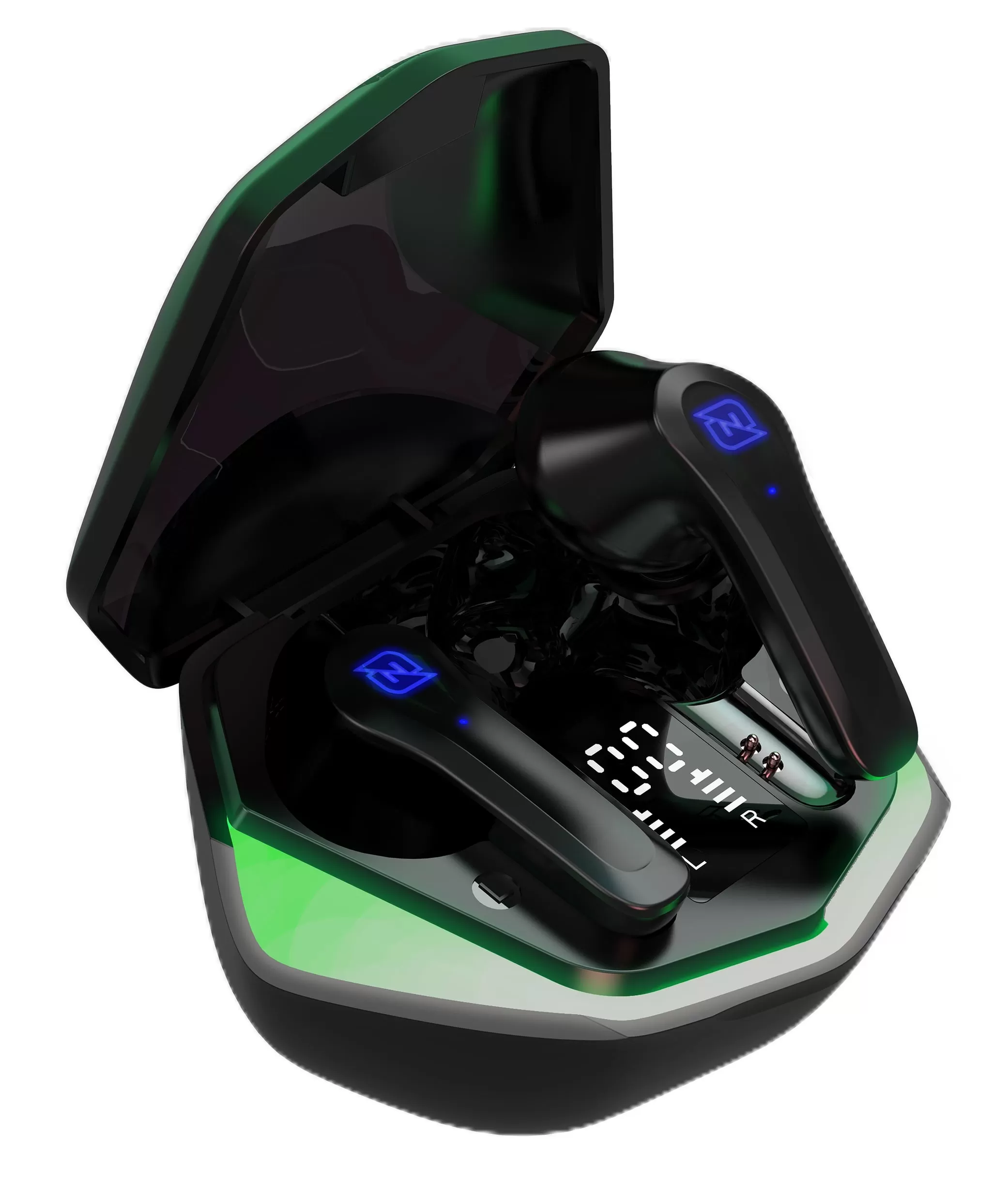 AUDIFONOS IN-EAR BLUETOOTH 5.1 TRUE WIRELESS GAMING SUPERBASS LUZ RGB 30MAH CAJA DE CARGA 200MAH MINIMA LATENCIA DISPLAY INFORMATIVO NEGRO