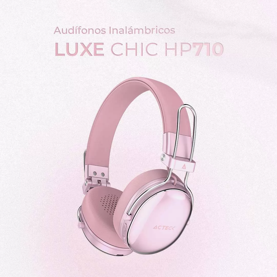 Audífonos Inalámbricos Bluetooth Luxe Chic HP710 Acteck Elite Series Duración de batería hasta 30h, Color Rosa. AC-940900
