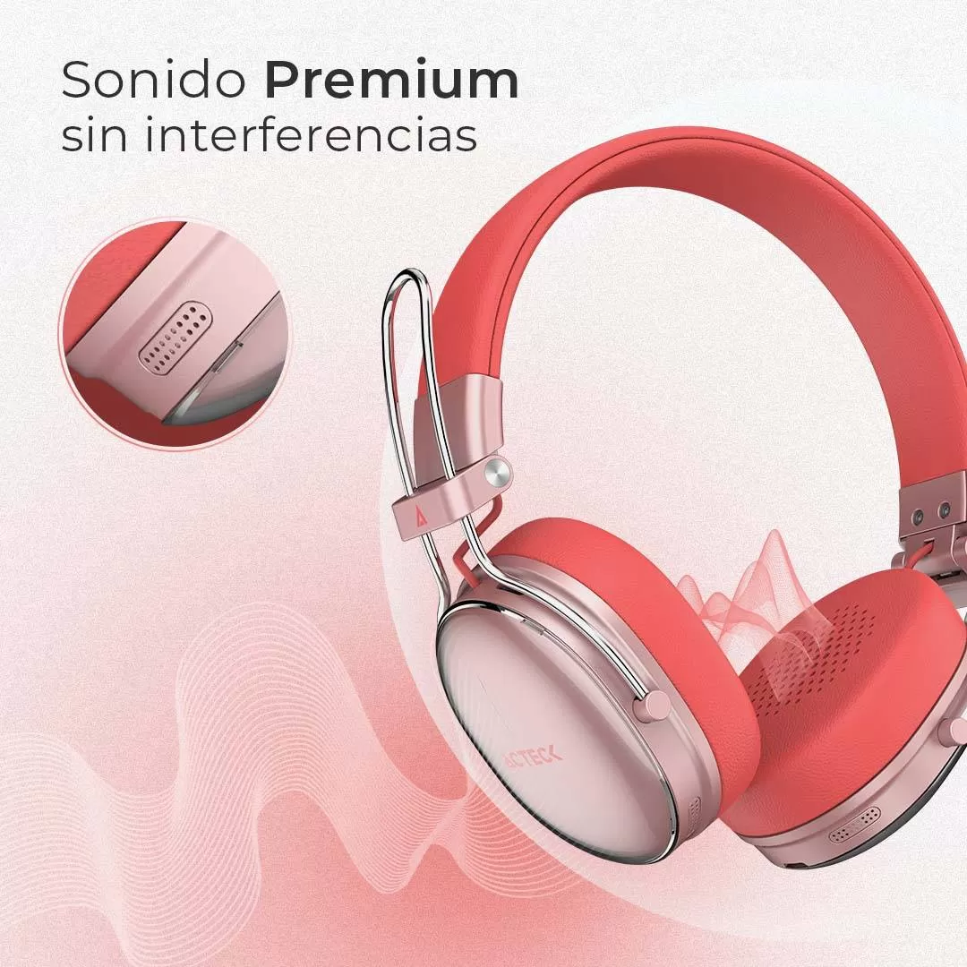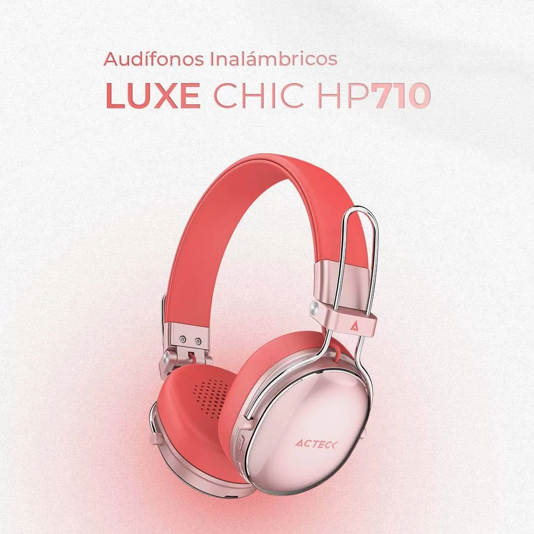 Audífonos Inalámbricos Bluetooth Luxe Chic HP710 Acteck Elite Series Duración de batería hasta 30h, Color Salmon. AC-940894