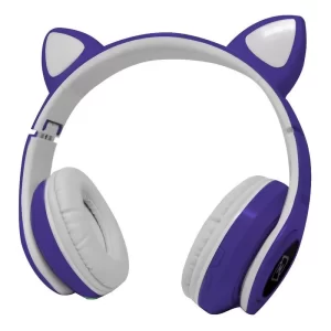 AUDIFONOS ON-EAR BLUETOOTH NBH-07 CON OREJAS LUZ RGB RADIO FM MICRO SD 3.5MML MANOS LIBRES MORADO