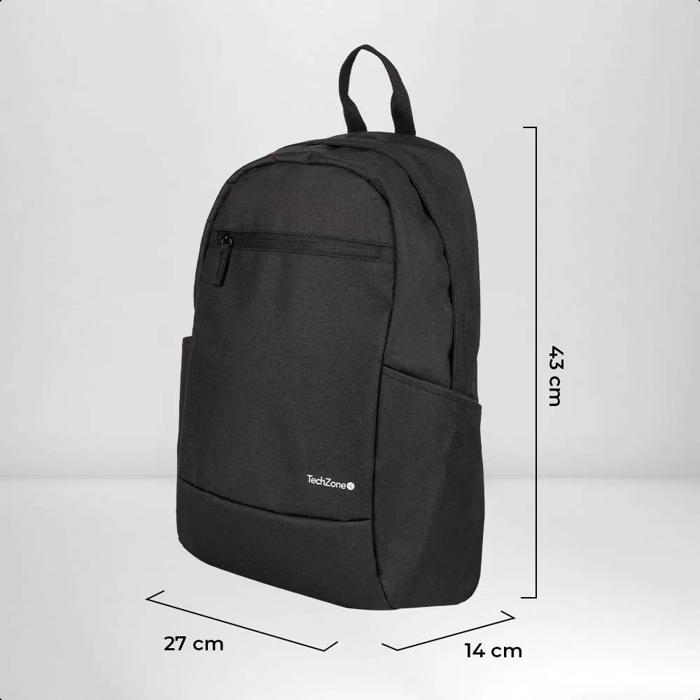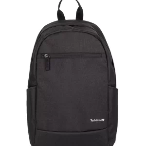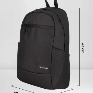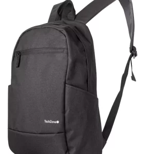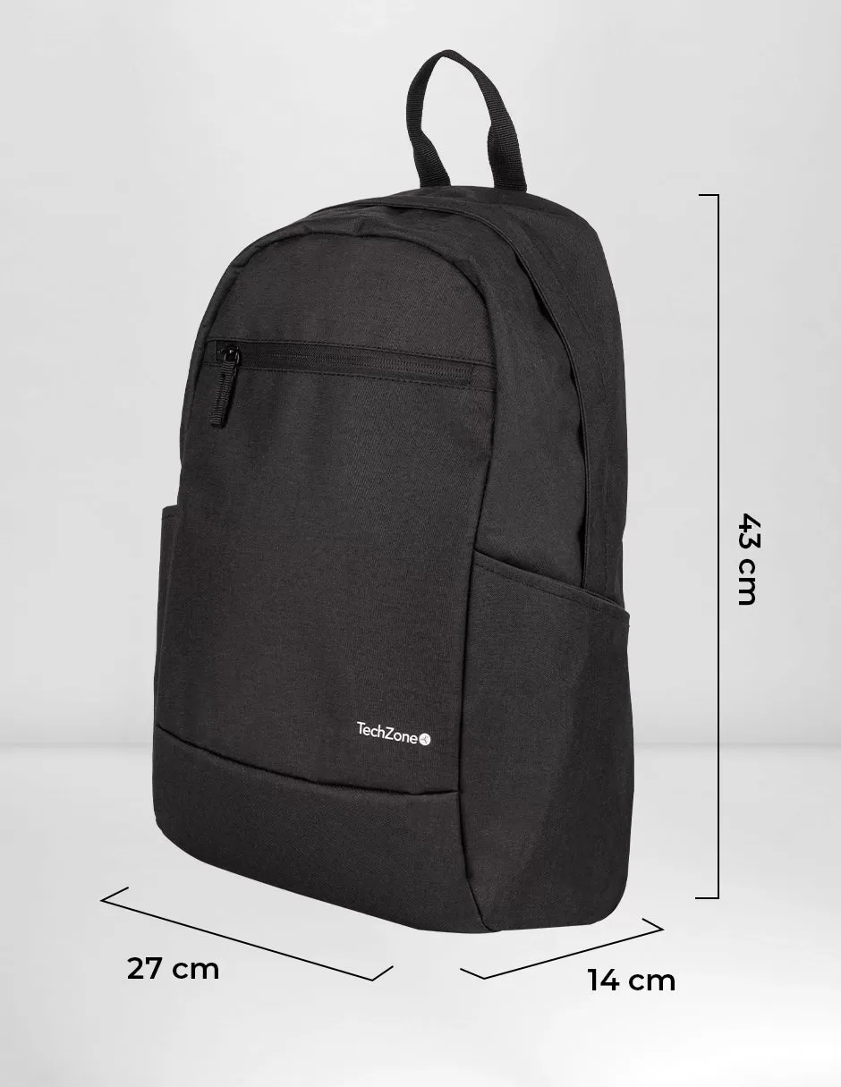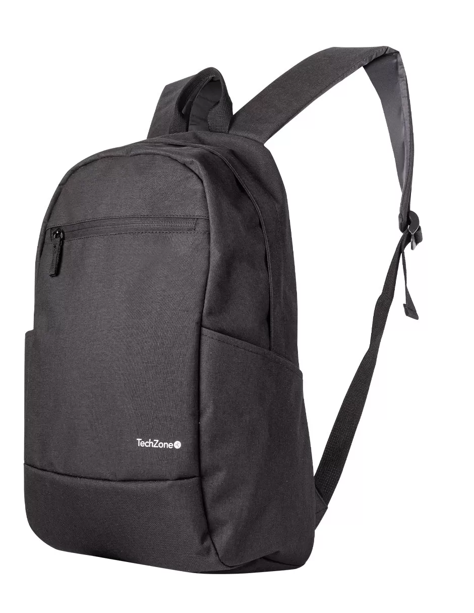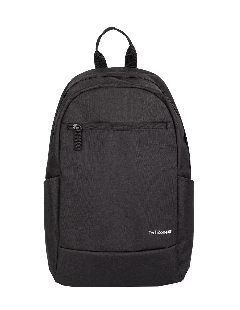 Backpack Basic Black TechZone TZLBP15 15.6 pulgadas, color negro, 2 bolsos laterales y 1 frontal, tirante acojinado. GARANTIA LIMITADA DE POR VIDA