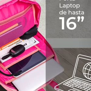 Backpack RAINBOW TZLBP26-R TECHZONE COLORS 16, color Rosa, 100% Poliester GARANTIA LIMITADA DE POR VIDA.