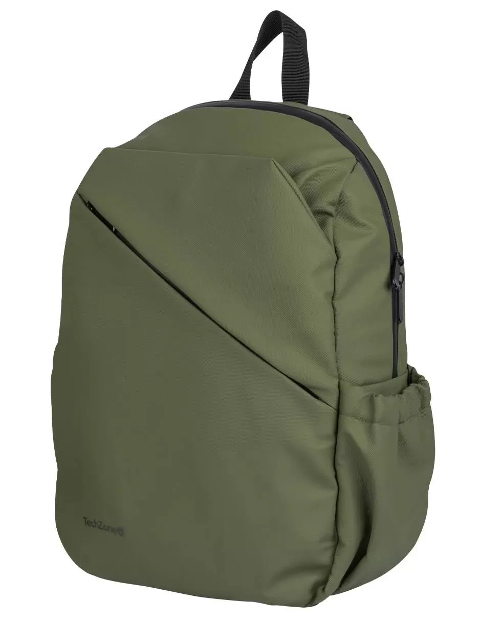 Backpack STYLE TZLBP29-V TECHZONE 16, resistente a salpicaduras 100% Poliéster, color Verde, GARANTIA LIMITADA DE POR VIDA.