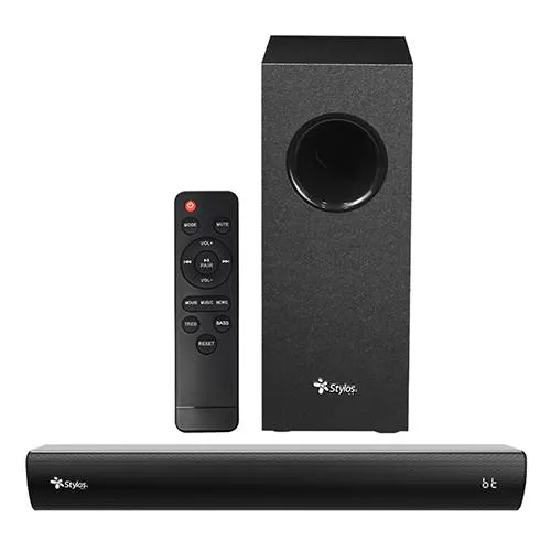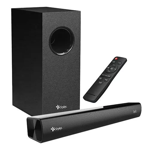 Barra de Sonido 2.1 Stylos STAB210B, conectividad múltiple Bluetooth, HDMI ARC, USB, Entrada AUX 3.5 mm