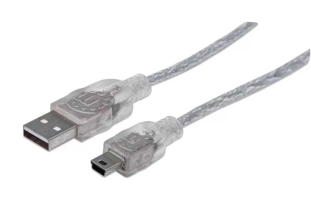 333412 Cable USB 2.0, A macho a Mini-B macho, 480 Mbps, 1.8 m, Plateado translúcido