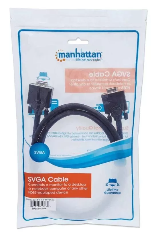 311731 Cable SVGA HD15 macho a HD15 macho, de 1.8m Color Negro, Completamente blindado para reducir la interferencia EMI.