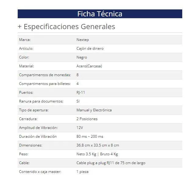Cajón de Dinero Nextep Ne-514, Negro, Acero, 8, 4