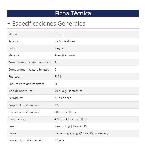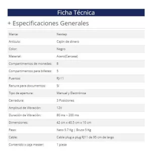 Cajón de Dinero Nextep NE-515, Negro, Acero, 8, 5