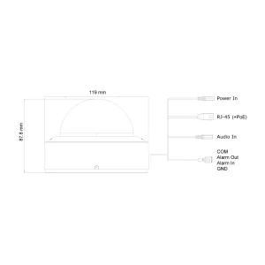 Camara antivandalica IP 2 MP, Lente 2.8mm (99°), de dia detecta hasta 40 mts/Reconoce: 8 mts/Idetifica: 4 mts, IR hasta 20 mts, RF, microfono, IP67