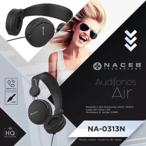 Diadema Naceb Technology NA-0313N, Diadema, Negro, 1.2 m