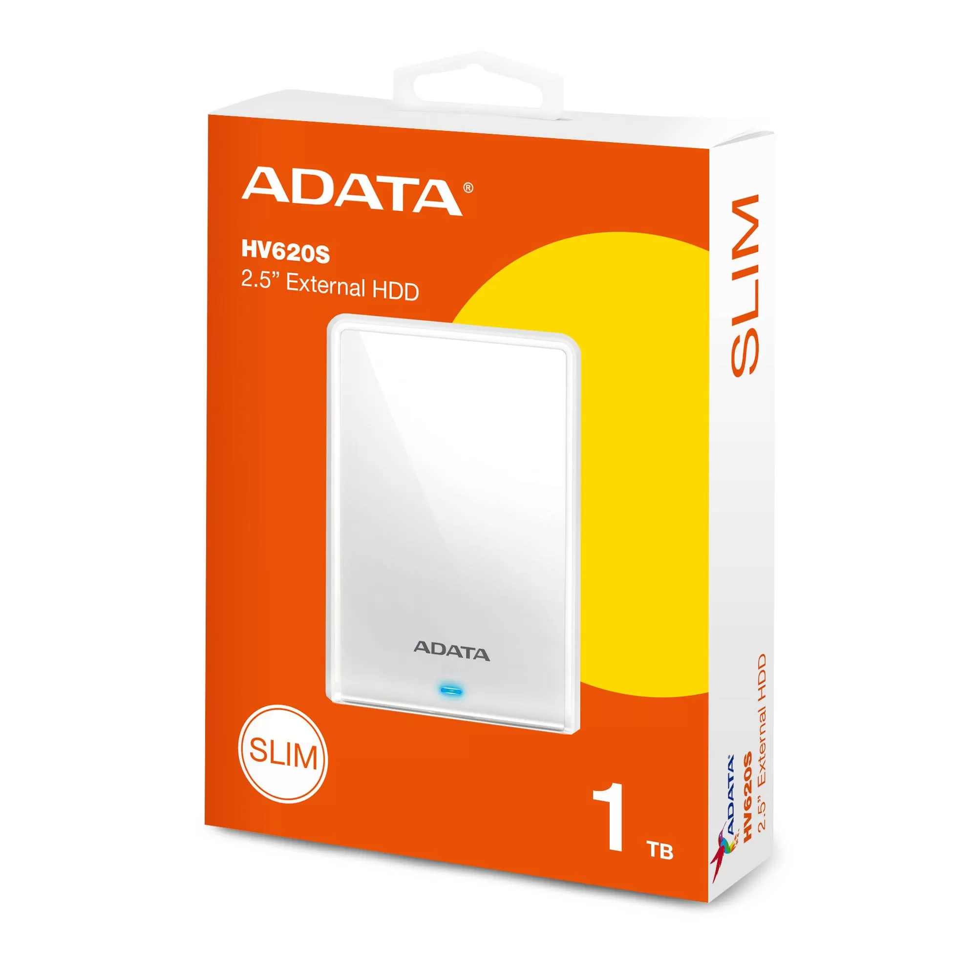Disco Duro Externo ADATA HV620S, 1 TB, USB 3.2 Gen1 (compatible con las versiones anteriores USB 2.0), 2.5 pulgadas, Color blanco