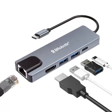 DOCKING STATION 5 EN 1: USB V3.0 TIPO C A HDMI, 2 PUERTOS USB V3.0, USB TIPO C, RJ45 GIGABIT, BROBOTIX 6000694
