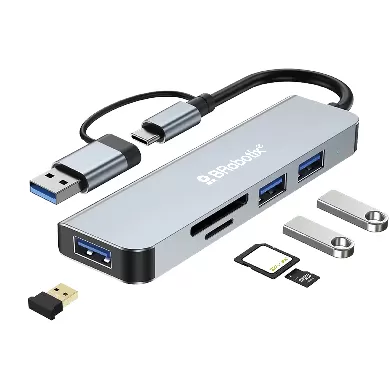 Docking Station Conector DUAL Tipo USB A&C, V3.0 , 5 en 1, /3 USB/SD/microSD/ BROBOTIX 6005453