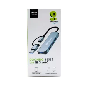 Hub Conector DUAL Tipo USB A&C, V3.0 , 4 en 1, /4 USB/ 6005460 BROBOTIX