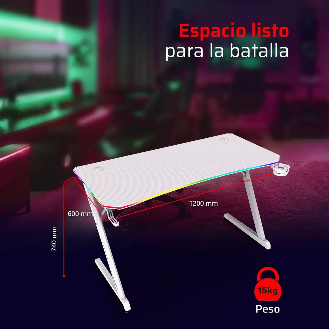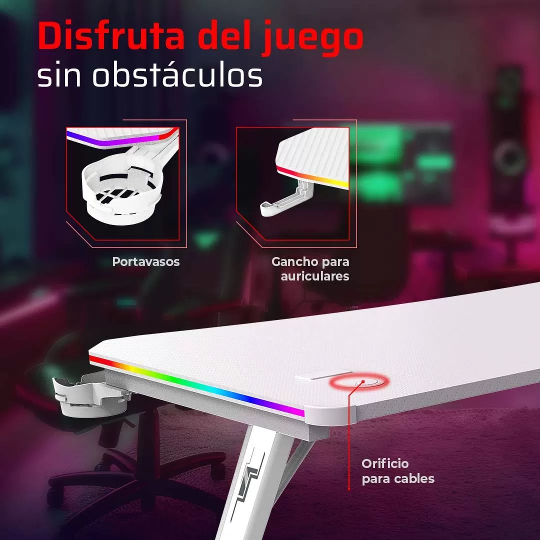 Escritorio Gamer Ergonómico Olympus Spot Glow Pro MRX8000 Balam Rush Legend Series Escritorio Gamer Ergonómico 120 x 60cm, Iluminación RGB, Porta Vasos