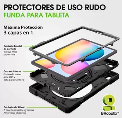 FUNDA PROTECTOR C/CORREA, USO RUDO, GIRO 360°, PARA LENOVO TAB M8, TB300FU (2023), TB301XU (2024), 8 PULGADAS, CON MICA, BROBOTIX 6005187