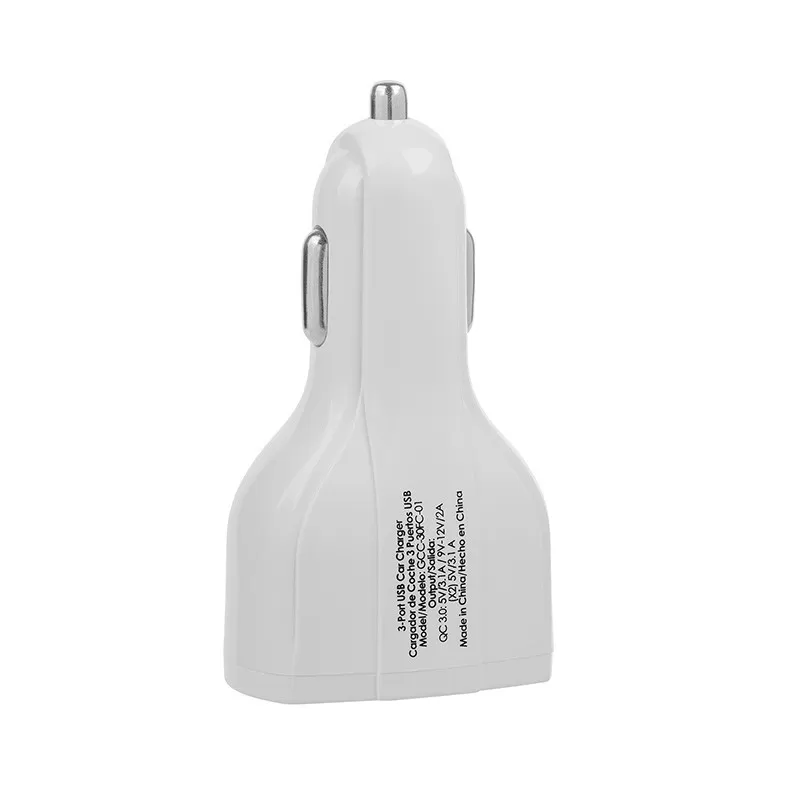 GETTTECH CARGADOR DE COCHE CON 3 PUERTOS USB 1 DE CARGA RAPIDA, MODELO VISTOK COLOR BLANCO, TAMAÑO COMPACTO, MOD. GCC-30FC-01
