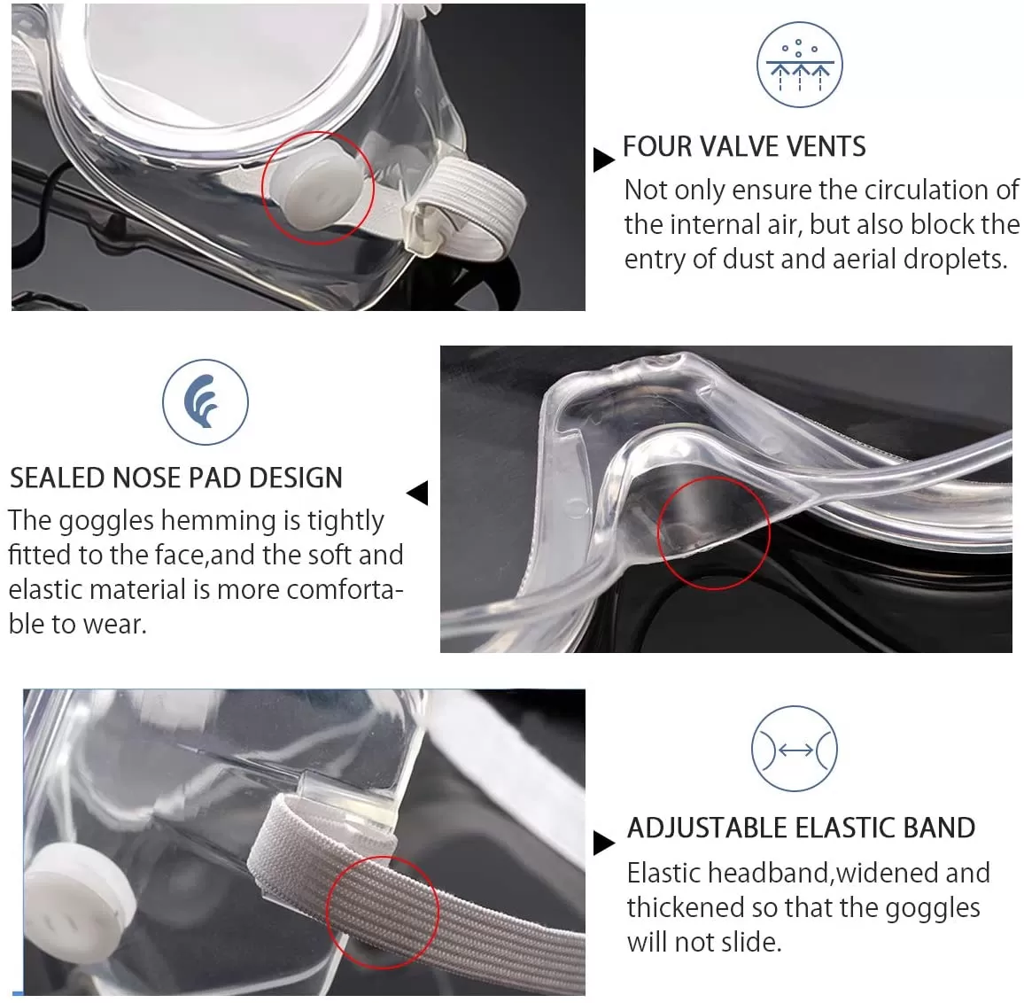 Goggles de protección, GKSA01-B, KSA, 4 válvulas de respiración, grado médico, elástico de sujeción y fijación de sellado para ojos, anti empañante