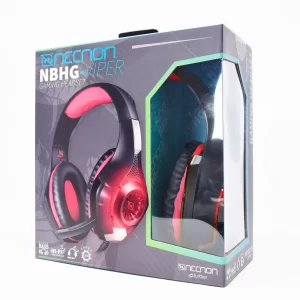 HEADSET GAMING OVER-EAR NBHG VIPER LED ALAMBRICO DIADEMA FLEXIBLE MICROFONO 3.5MM USB PC CONSOLAS CELULAR INC ADAPTADOR MEGABASS ROJO