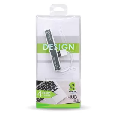Hub USB V2.0, SMALL, Compacto, 4 Puertos, Plata, BROBOTIX 180727-5