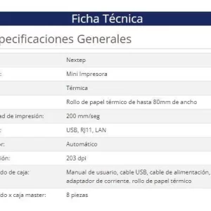 Impresora Nextep Térmica 80mm USB/RJ11/LAN /160 mm/s, 203 dpi