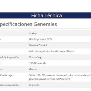 Impresora Térmica POS Nextep Portátil 80mm USB/Bluetooth
