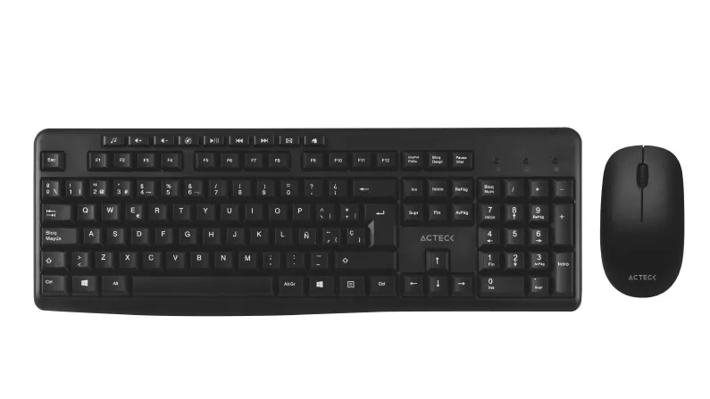 Kit de teclado y mouse ACTECK KT-28, Conectividad inalámbrica 2.4ghz, 105 teclas + 9 multimedia, Compatibilidad Windows xp, vista, 7/ 8 / 10
