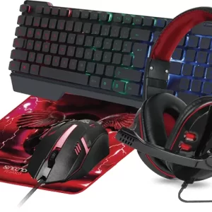 KIT GAMING 4 EN 1 NGC-PEGASUS AUDIFONOS LED TECLADO 104 BOTONES MOUSE 3 BOTONES 1000DPI MOUSEPAD ROJO