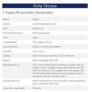 Lector de Códigos de Barra y QR Nextep Inalámbrico (1D/2D) USB