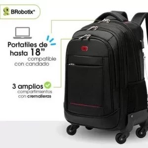 MOCHILA BACKPACK 15 A 18 PULGADAS, ANTIRROBO CARRY ON (CON RUEDAS) PARA LAPTOP, NEGRO, 406245 BROBOTIX