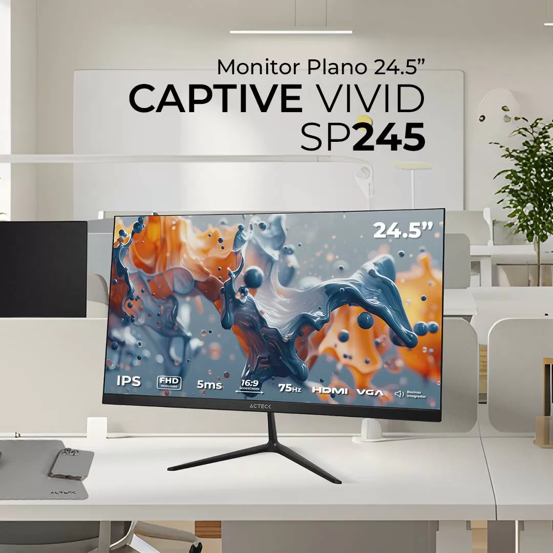 Monitor Plano 24.5 Pulgadas CAPTIVE VIVD SP245, FULL HD 1920×1080 PX, 75 HZ