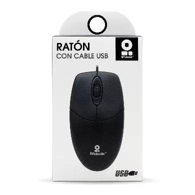 Mouse Básico USB BROBOTIX 497202, Negro, 3 Botones, Alámbrico, Óptico