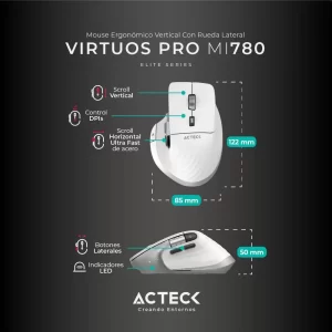 Mouse Inalámbrico Vertical Profesional Virtuos Pro MI780 ACTECK Scroll Horizontal Ultra Fast de acero