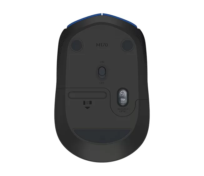 Mouse LOGITECH M170, Negro con detalles en Azul, 3 botones, RF inalámbrico