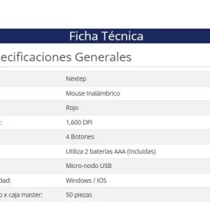 Mouse Nextep Inalámbrico NE-411 USB Color Rojo 1600 dpi Batería Incluidas 4 botones utiliza 2 baterías AAA Interfaz Micro-nodo USB Windows / IOS