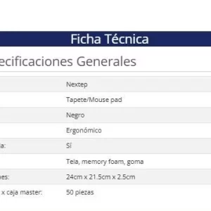 Mouse Pad Nextep NE-418R color Negro material Gel con Descansa Muñecas Tela Memory foam y Goma