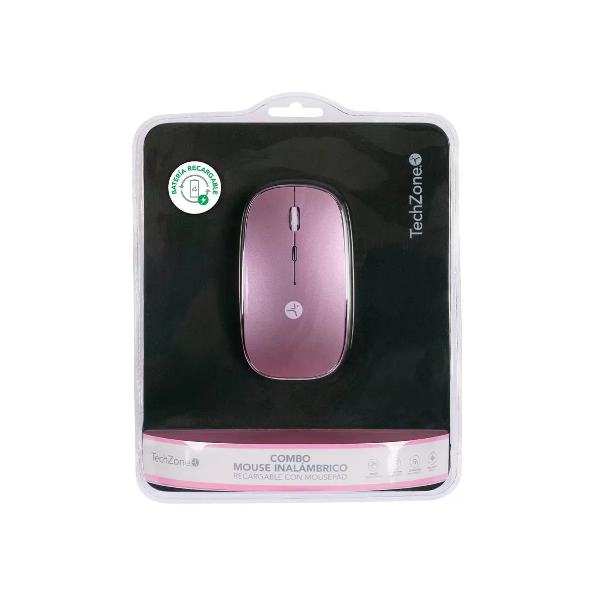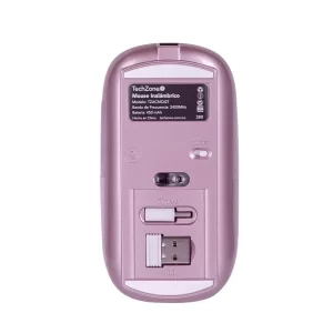 Mouse SLIVE recargable rosa con nano receptor tipoC y USB A, mousepad incluido, TECHZONE, TZACMOI27, DPI:1000,1200,1600