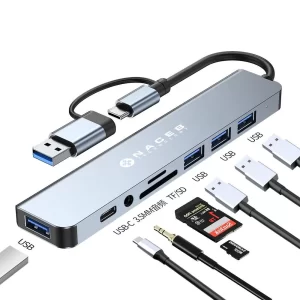 NACEB ADAPTADOR USB-C/A 8 EN 1 USB3.0+3*USB2.0+USB-C+SD/TF+AUX NA-0149