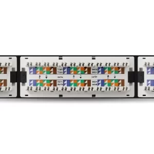 Panel de Parcheo CAT5e, 24 puertos RJ45, Montaje en Rack 1U, Negro, BROBOTIX 497448