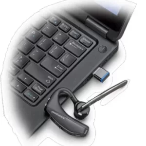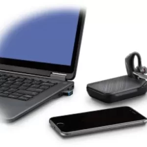 Poly Voyager 5200 UC, Bluetooth para moviles y computadoras, incluye estuche de carga y adaptador Bluetooth