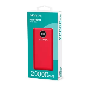PowerBank ADATA P20000QCD, 20,000 mAh. Compatible con Qualcomm QC 3.0 y USB Power Delivery 3.0. indicador digital de carga y 2 puertos USB-A y 1 USB-C