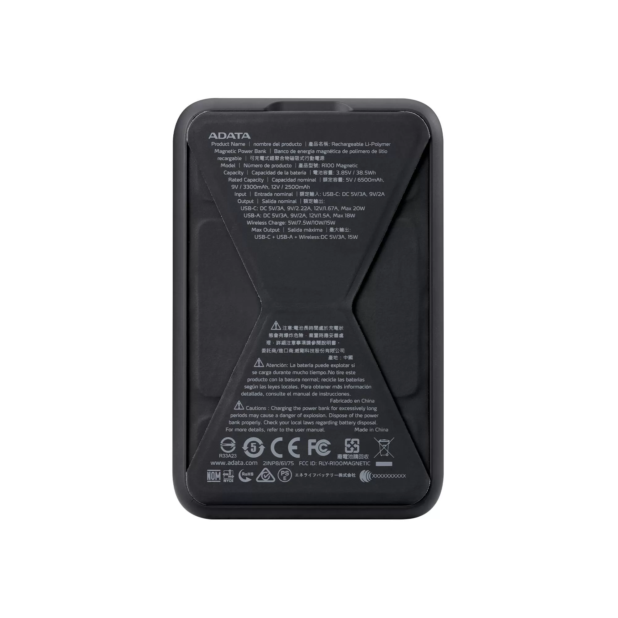 Powerbank inalámbrico ADATA R100, 10,000mAh, Carga rápida QC/PD de 20 W. MAGNETICO. PR100-12BK