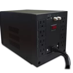 Regulador de Voltaje AVR 2408, 2400 VA, 1200 W. Monofásico, Voltaje nominal de 120VCA, Rango de frecuencia 50/60Hz, 8 contactos tipo NEMA 5-15R