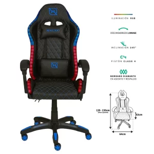 SILLA GAMER RGB INCLINACION RESPALDO 145 CLASE 4 140-150KG NSG-RGB1 FOAM 350MM 63CM*64CM*121-131CM COJIN LUMBAR Y CABEZA NEGRO/AZUL