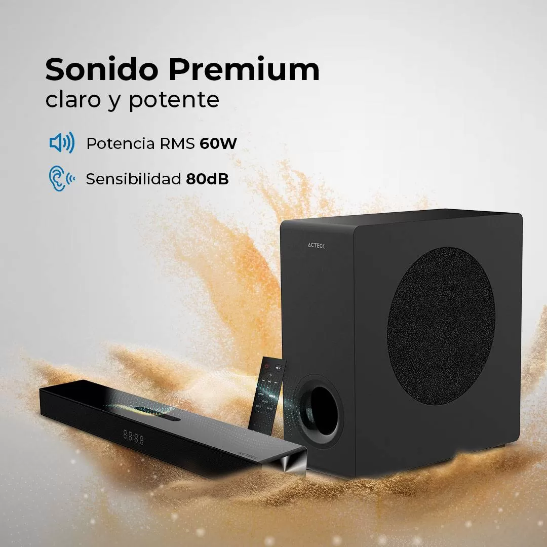 Sistema De Soundbar 2.1 Dynamic Thin BS600 Advanced Series,Control Remoto incluido, Color Negro. AC-940801