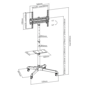 Soporte de carrito OVALTECH OVTV-CA3255 Móvil Para TV De 32 pulgadas a 55 pulgadas (Resistencia 35kgs)